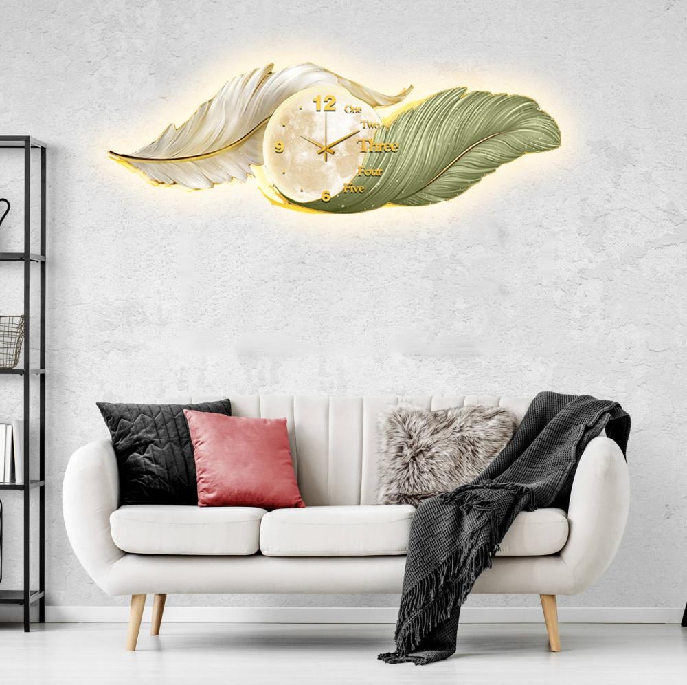 ساعة جدارية بتصميم راقٍ ينبض بالفخامة والدفء مع لمسات ذهبية تبرز جمال الريشة وتمنحها بريقًا مميزًا.